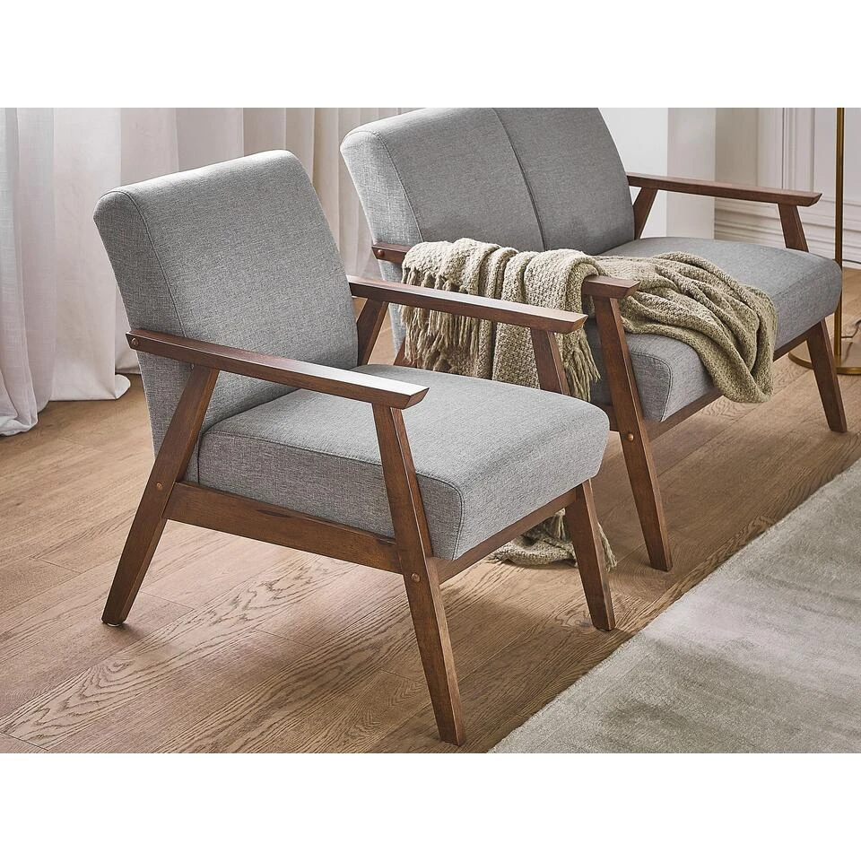 Trendy fauteuil in grijze retrolook. Postmodern, nostalgisch en traditioneel – dat typeert deze charmante gestoffeerde fauteuil het best. De bekleding van hoogwaardig polyester past perfect bij de bijbehorende rechte armleuningen en smalle poten van rubberboomhout. Dankzij het eenvoudige ontwerp van deze gestoffeerde fauteuil past het meubelstuk in alle traditioneel ingerichte woonkamers en geeft het een onvergetelijke retro flair aan alle interieurs.