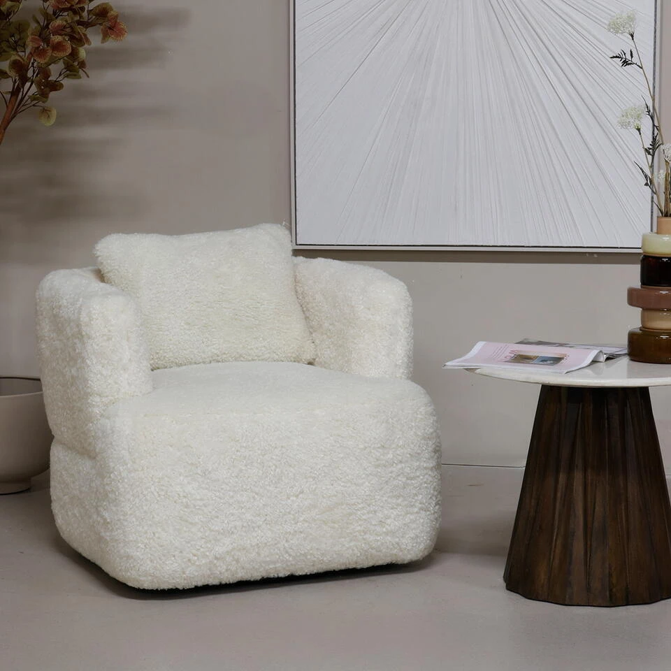 Draaifauteuil Ollie Beige Fluffy – Giga Meubel