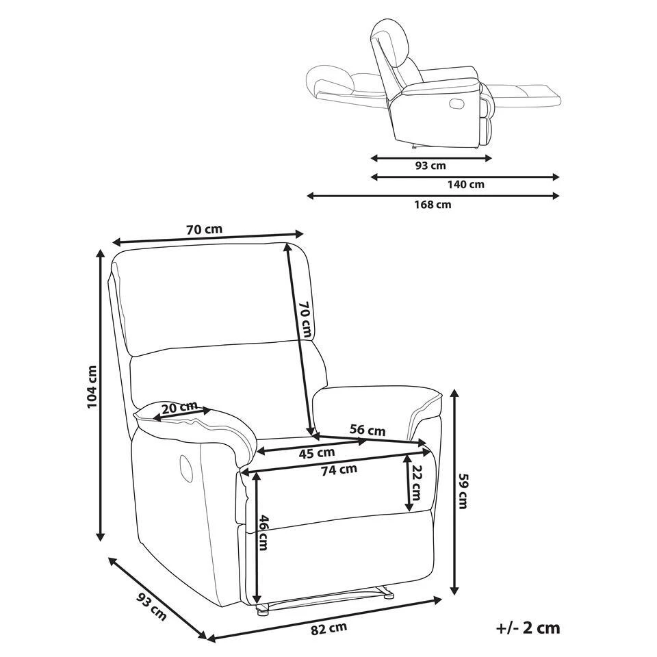 Belangrijkste eigenschappen: Verstelbare rugleuning en voetensteun, Perfect gevormde armleuningen, Uitstekende plek om te ontspannen, Past uitstekend in elk interieur, Voegt een huiselijke sfeer toe in elke ruimte