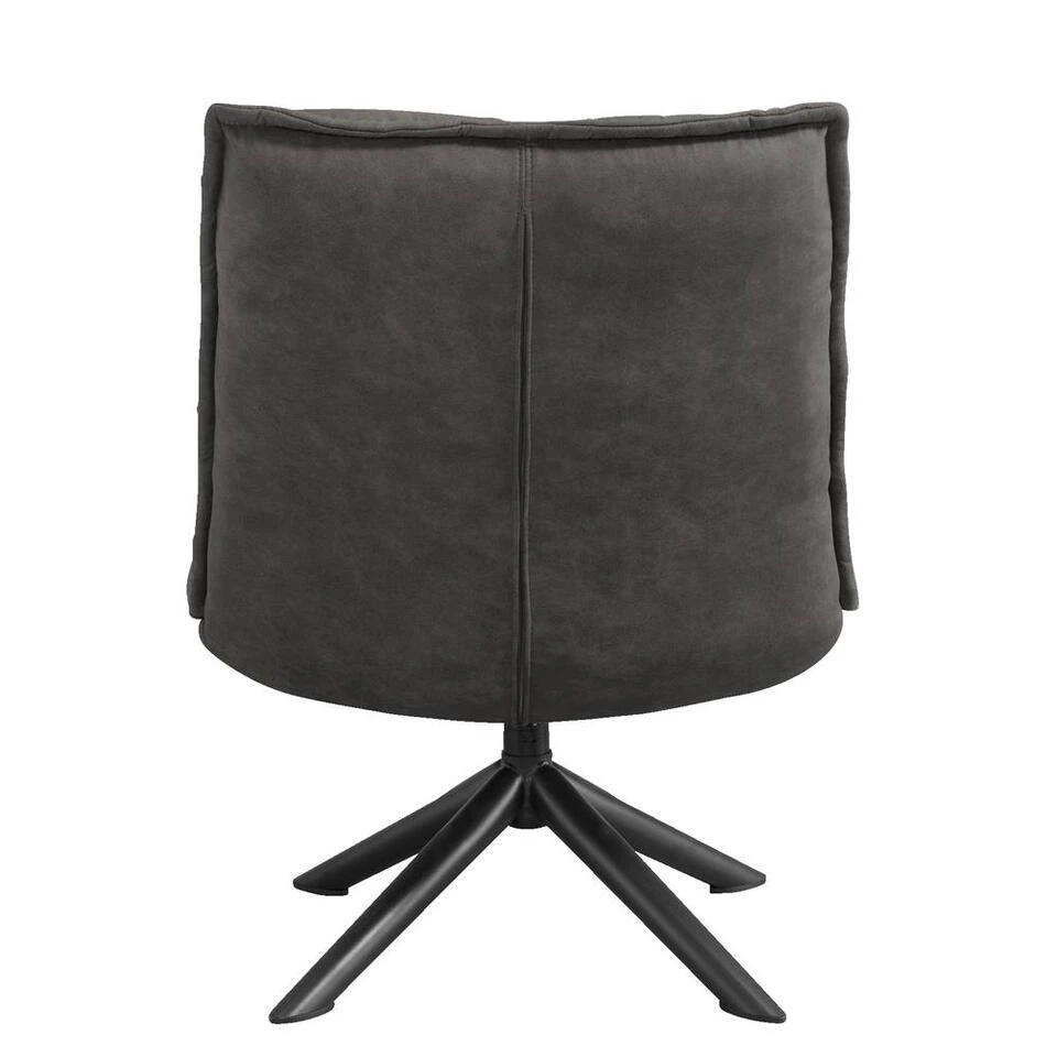 Fauteuil Clayton heeft een stoere en eigentijdse look. De stoel is bekleed met stof Preston in de kleur antraciet en heeft geen armleuningen. Deze stoel heeft een warme, sfeervolle en knusse uitstraling, maar wel met een robuust en hip tintje. Het onderstel is gemaakt van zwart metaal en heeft een kruisvorm. Deze stoel zit heerlijk en is een echte eyecatcher in je interieur. De fauteuil heeft een afmeting van 99x70x81 cm.