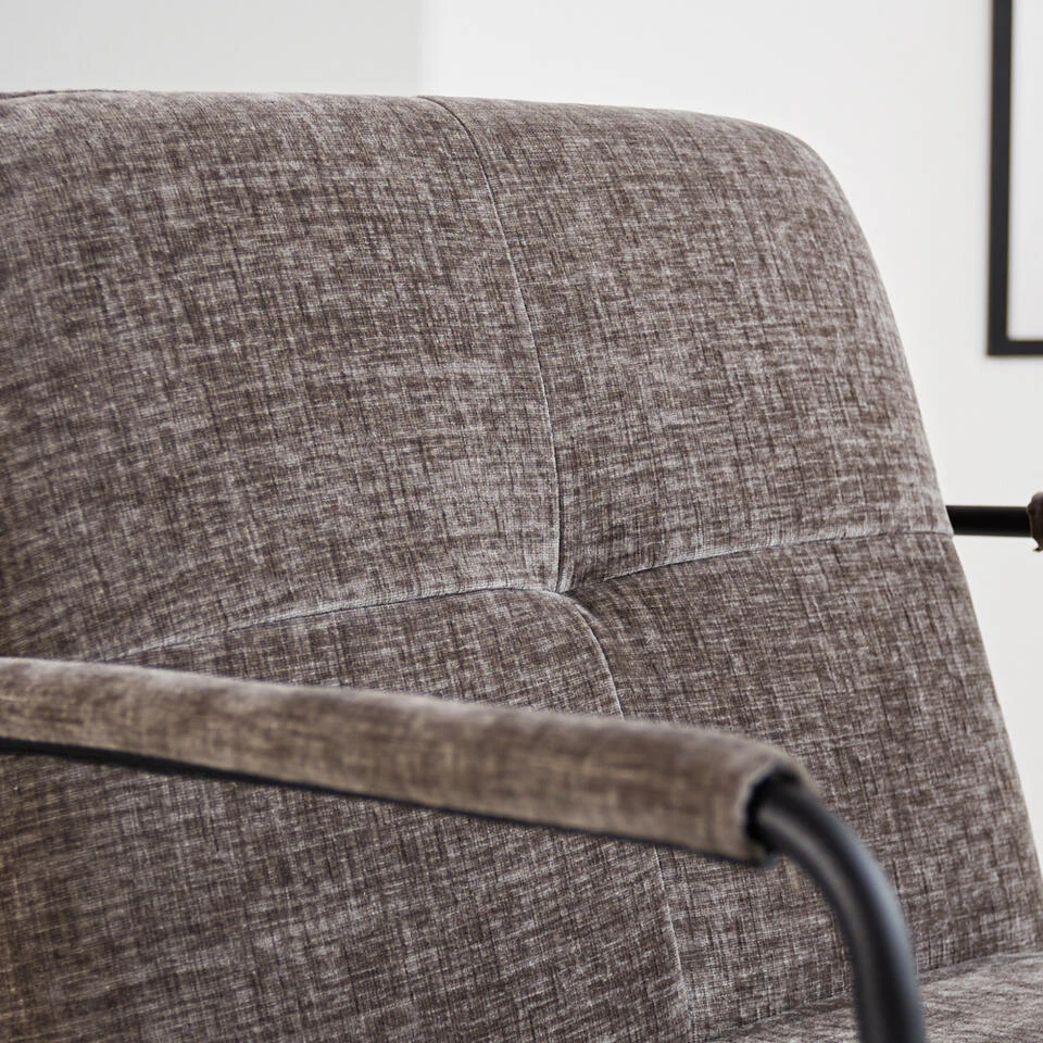 Deze fauteuil staat op metalen, zwart gepoedercoat frame. Het zwart metaal zorgt voor een stoere look en zorgt voor extra stevigheid.