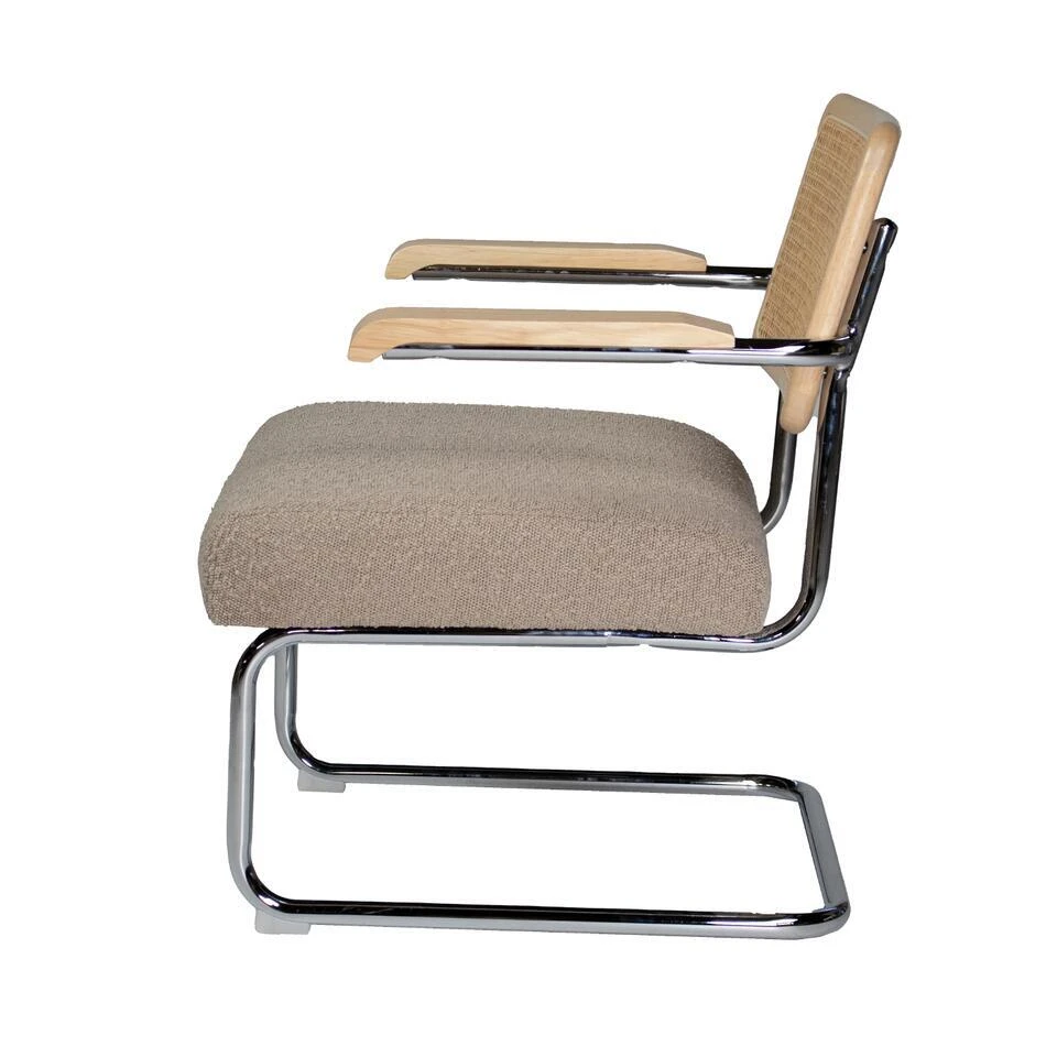Materiaal: De Fauteuil Jorian is gemaakt van een hoogwaardige combinatie van Chroom en Stof/Textiel, wat zorgt voor een comfortabele zitervaring en een lange levensduur.