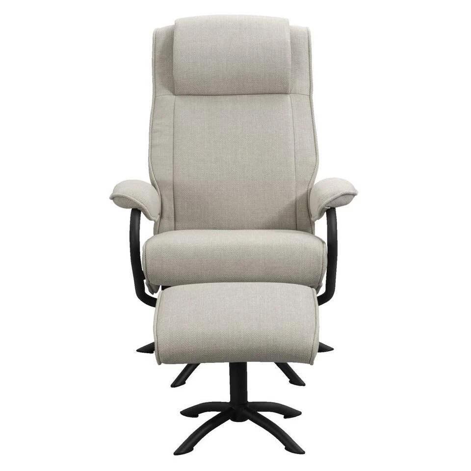 De fauteuil heeft een afmeting van 110×79,5×85 cm (hxbxd). Wordt geleverd inclusief bijpassende hocker.