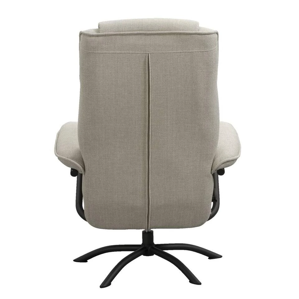 Relaxfauteuil Vincent in de kleur zand is een relaxfauteuil met een moderne look. De bekleding is gemaakt van 100% polyester en dat betekent dat deze stof onderhoudsvriendelijk en slijtvast is. Het onderstel is gemaakt van mat metaal en is draaibaar. Deze stoel zit heerlijk en is een echte eyecatcher in je interieur. De rugleuning van de stoel is d.m.v. een hendel naar achteren te verstellen.