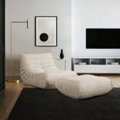 Merkloos HOME DELUXE Fauteuil CASARA Geweven Stof Beige – 99 X 72 X 104 Cm