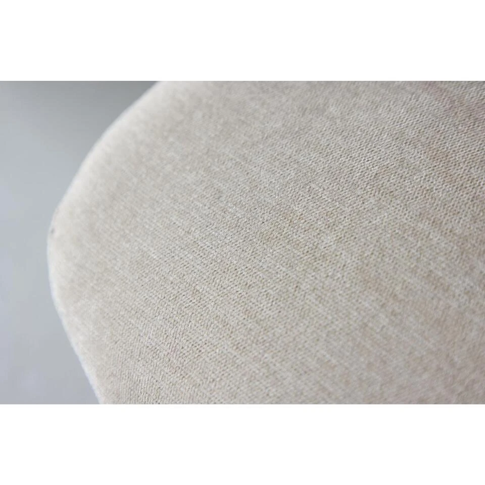Met afmetingen van 74x77x67 cm biedt deze fauteuil royaal zitcomfort, maar blijft hij compact genoeg voor zowel grote als kleinere ruimtes. De neutrale beige bekleding en witte details creëren een harmonieus en licht ontwerp dat moeiteloos past binnen uiteenlopende interieurstijlen, van klassiek tot modern.
